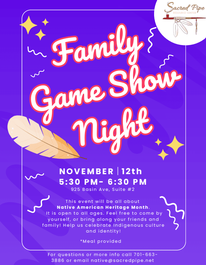 Sacred Pipe Resource Center 925 Basin Ave Suite 2, Bismarck, ND, United StatesEach Wednesday at 10 am we will post a bingo card with civic engagement questions in each of the squares to the SPRC Facebook Page.
