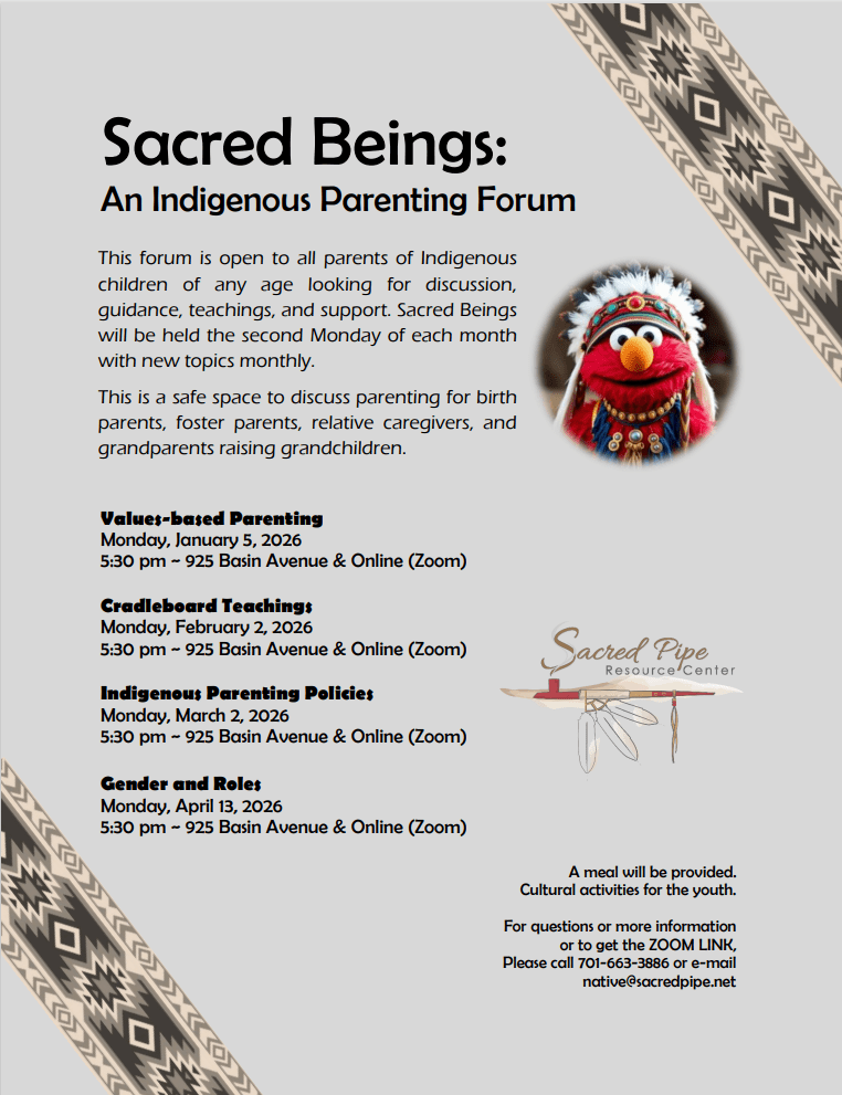 Sacred Pipe Resource Center 925 Basin Ave Suite 2, Bismarck, ND, United StatesPlease Call to get a ZOOM Link.